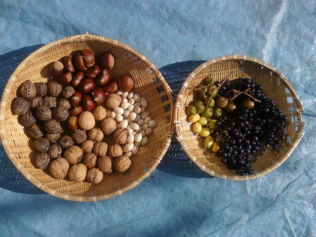 クルミ、栗、銀杏、コクワ、マタタビ、山ブドウ等。