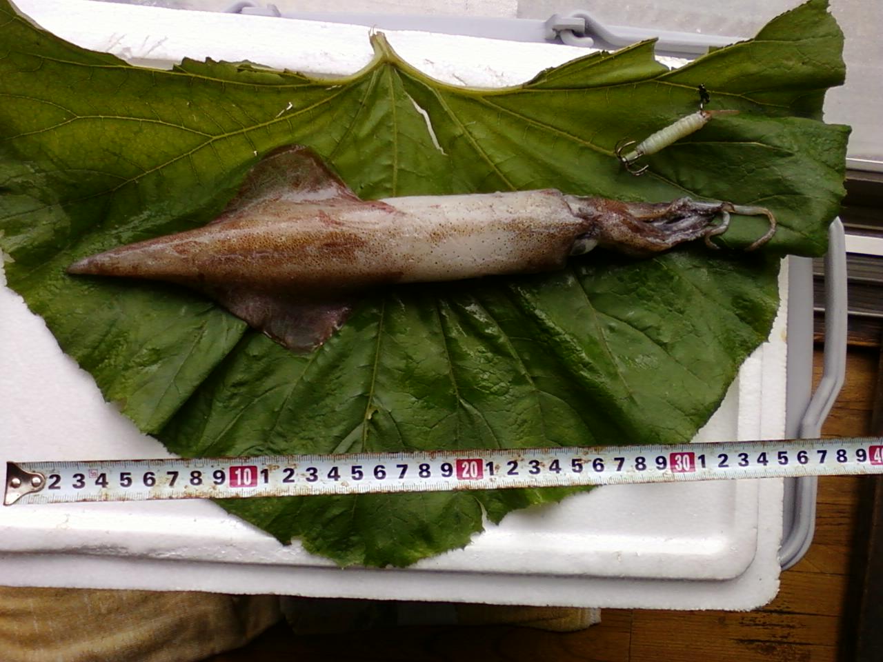 参考 写真は今年釣れたパラソルとも呼ばれる大型ヤリイカです。釣れた場所はもちろん函館近郊の漁港です。