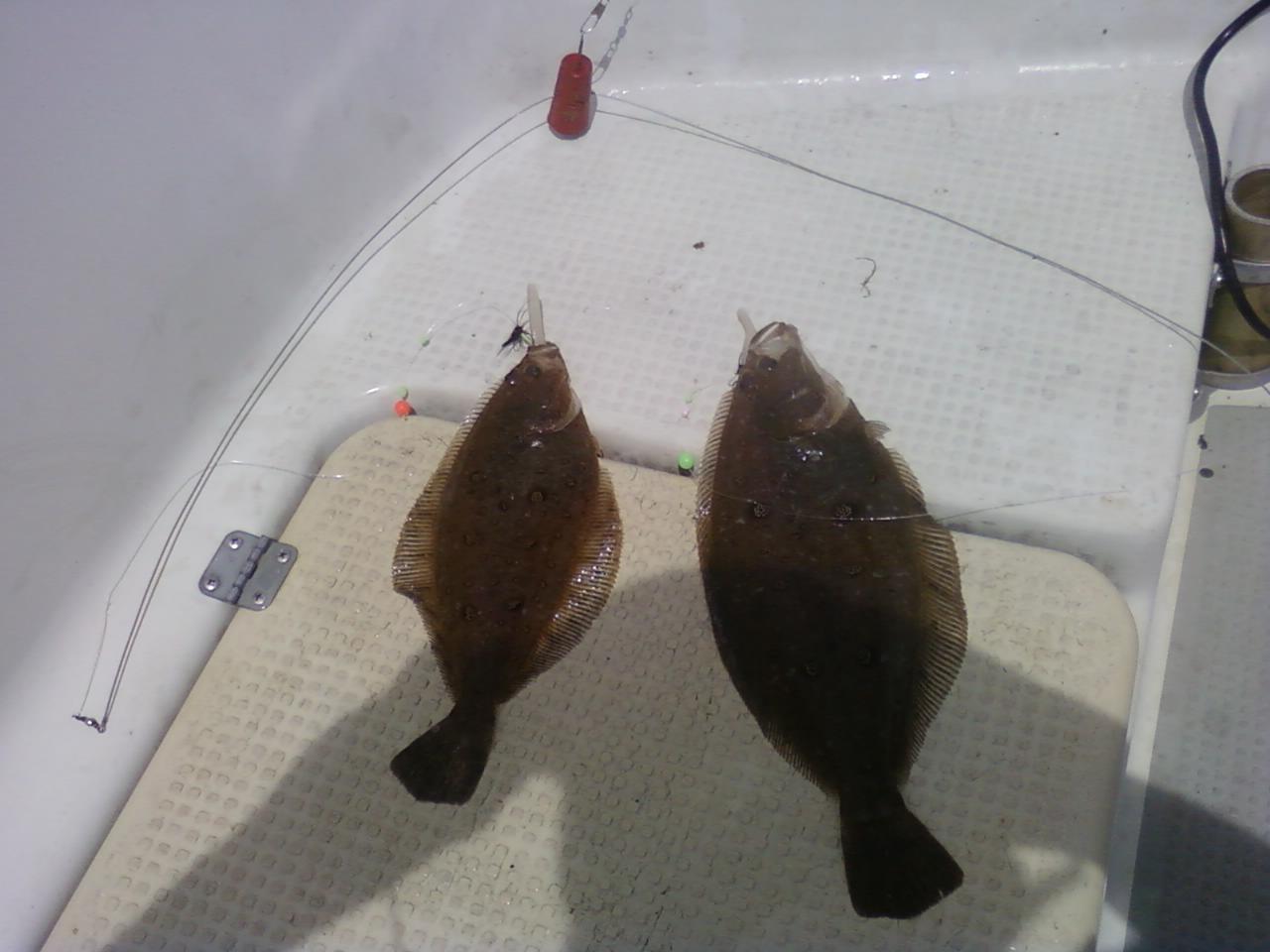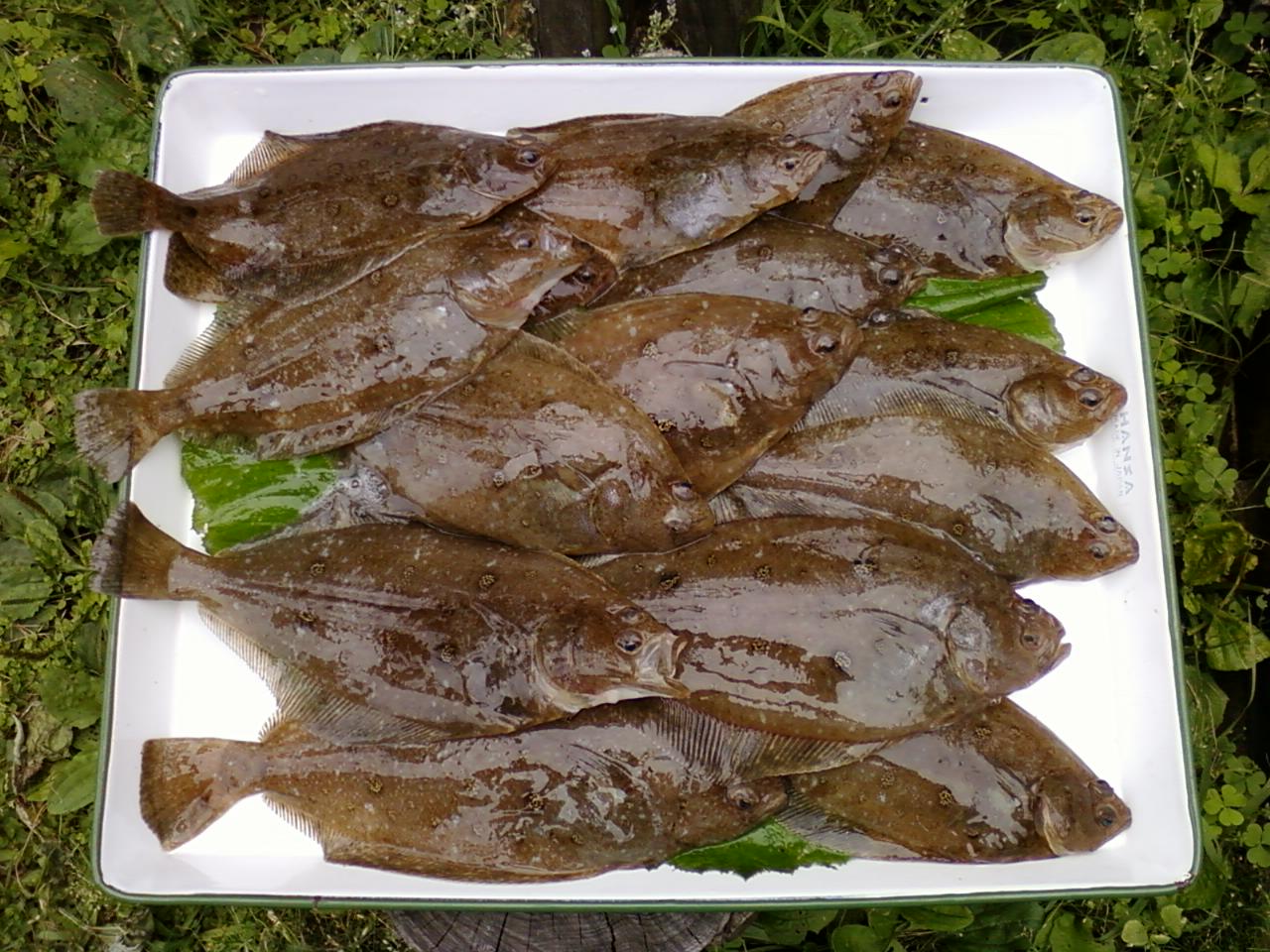 写真は水深50メートルで釣った、ミズクサカレイです。