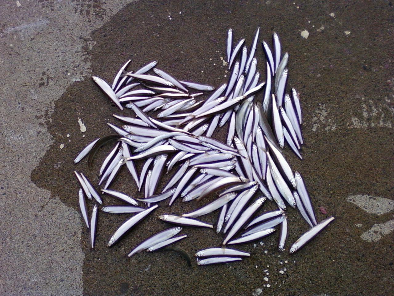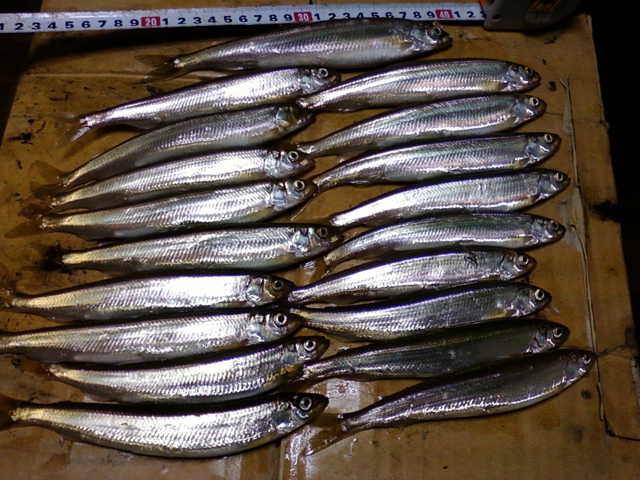体長15センチから20センチのチカとイカナゴ多数。 真水で綺麗に洗い臭みをなくし塩水に30分位つけ4~5日干し、焼い食べる。イカナゴも同じだが刺身も独特な味でいけるぞ~