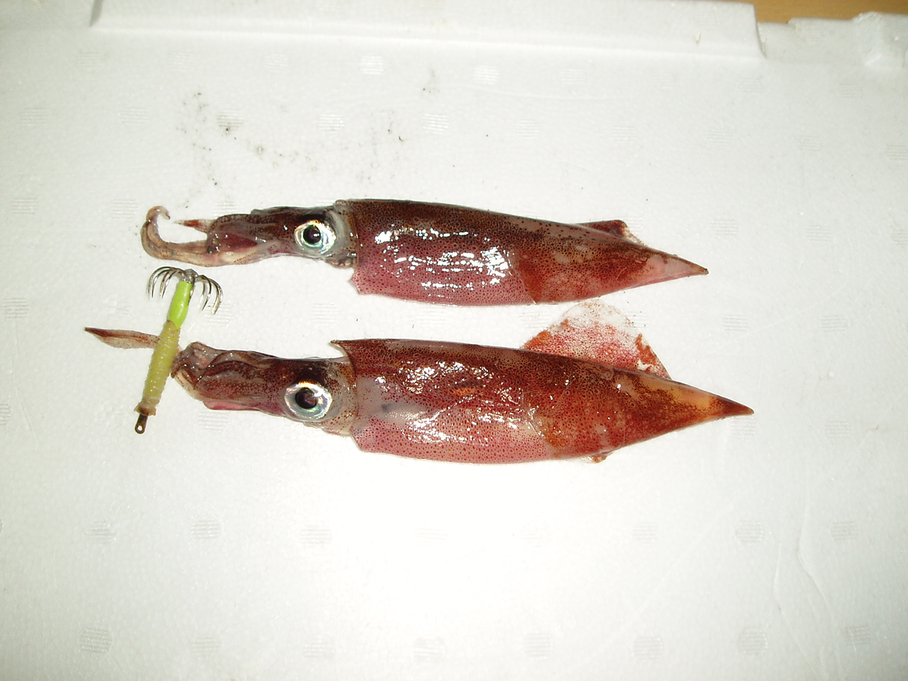 本日は新湊漁港でモガ針を用いての釣行。画像の通り型こそ小型であるが、待望のヤリイカが釣れました。