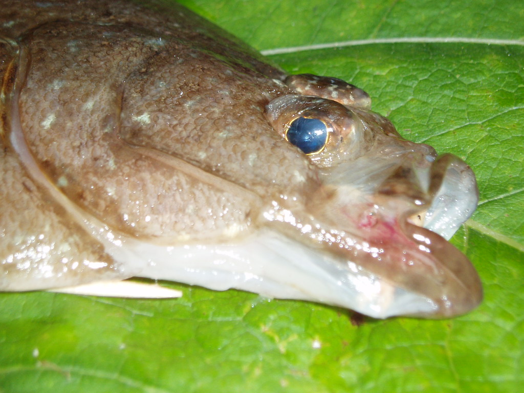 口はソウハチそっくりながら、魚食性らしく歯がありまるでヒラメのよう。結構どう猛そうな顔つきです。
