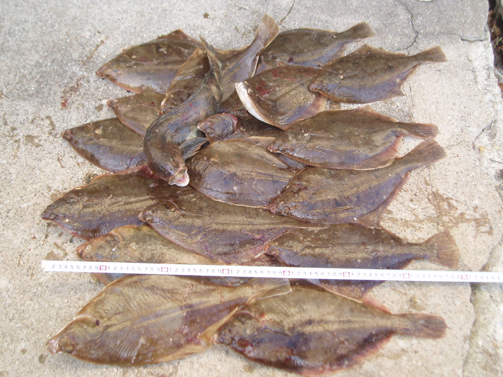 ・40cmクラスのマガレイ20枚のほか、25cmクラスのマガレイとイシガレイが多数。