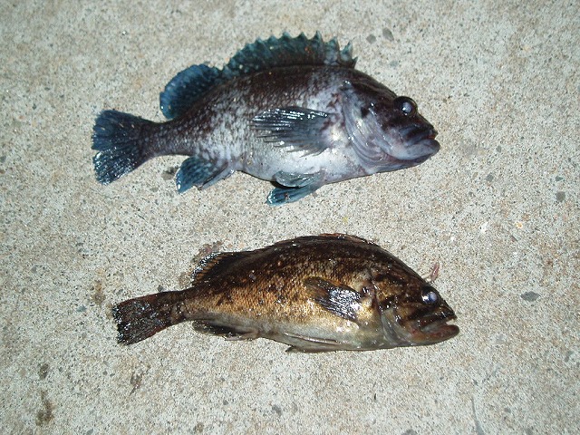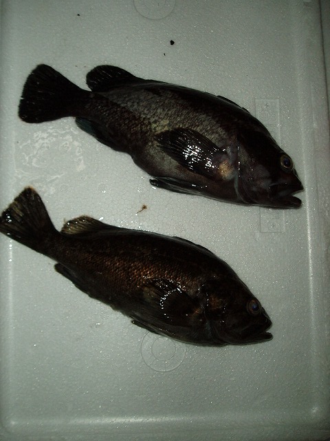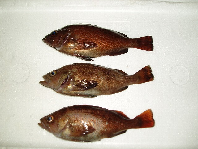 エゾメバルと思しき魚、3匹釣れました。小型ながら引き抜群(御崎漁港にて)