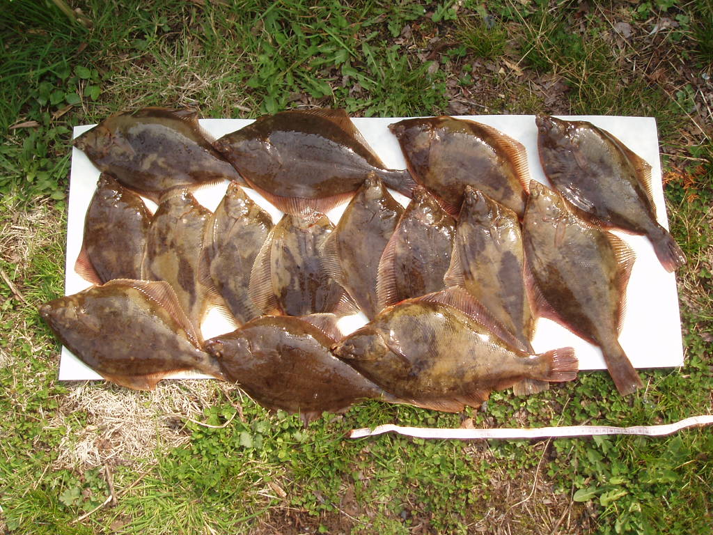 釣果はマガレイ(30~40cm)一人平均60枚、ソウハチ(40センチ)も混じる。なお、小さいものはリリースしました。マガレイもですが、ソウハチの釣果も今後期待が持てそうです。
