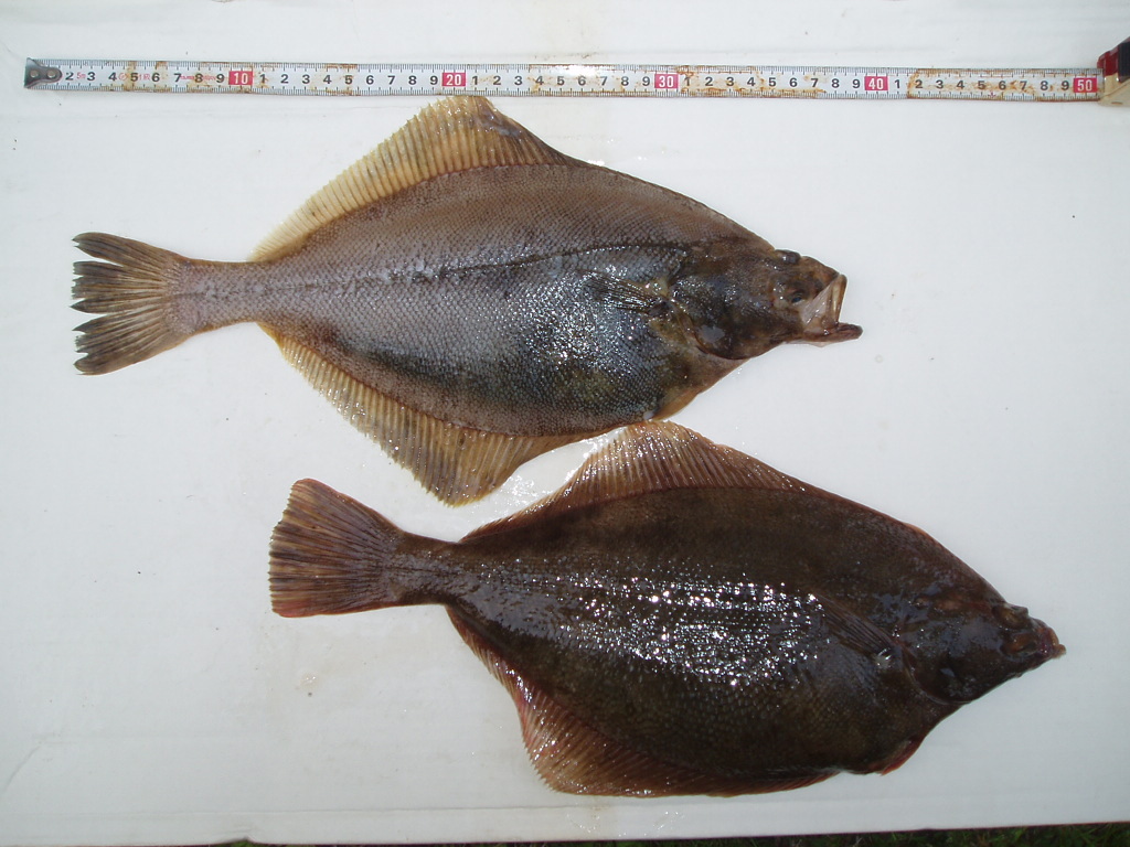 画面右:オスのマガレイ。魚体は雌に比べると小型。