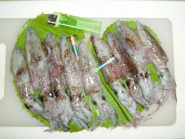 魚種:豆イカ(ジンドウイカ)、胴長10センチ前後9パイ
