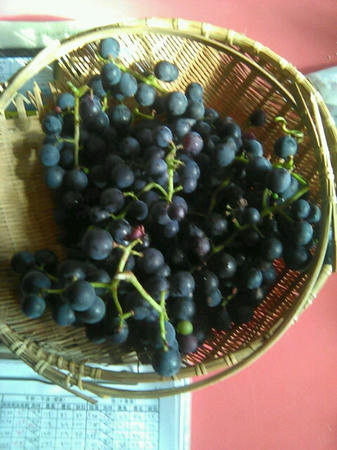 挿し木から、育てたぶどうの木に今年もまた、豊作です。