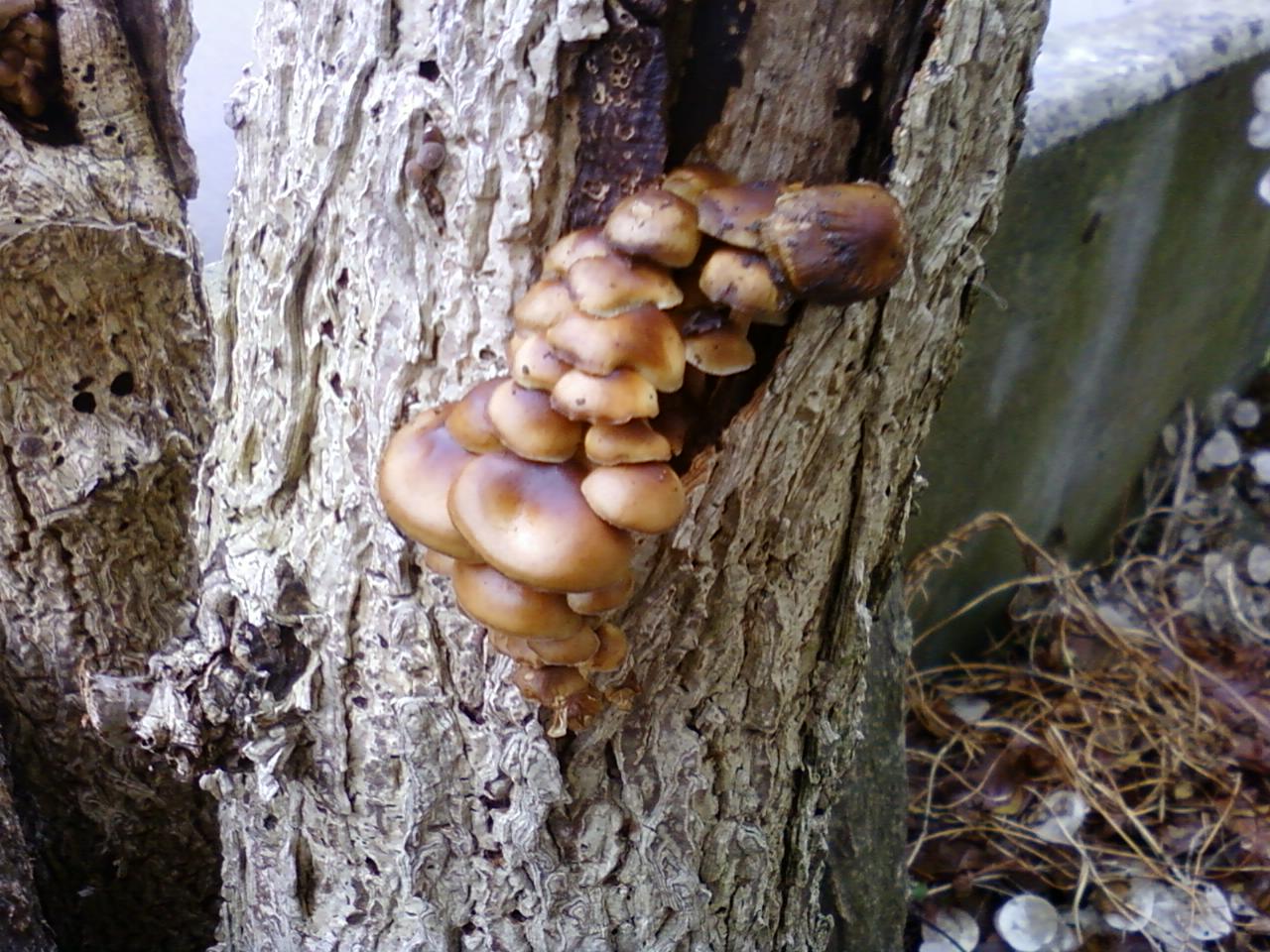 種菌を打ち込んでない未使用の原木や伐根から天然のエノキタケが昨年に続きまた出て来ました、どこからか飛んで来た胞子が付いて条件がそろったのでしょう。