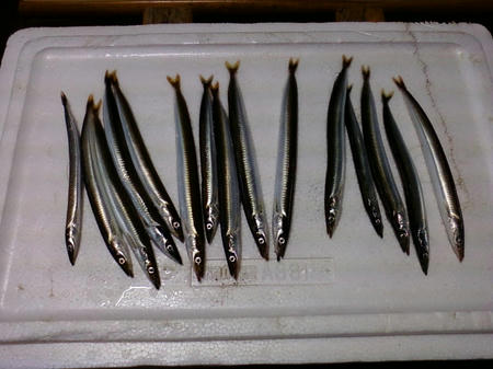 体長15センチから20センチのチカとイカナゴ多数。 真水で綺麗に洗い臭みをなくし塩水に30分位つけ4~5日干し、焼い食べる。イカナゴも同じだが刺身も独特な味でいけるぞ~