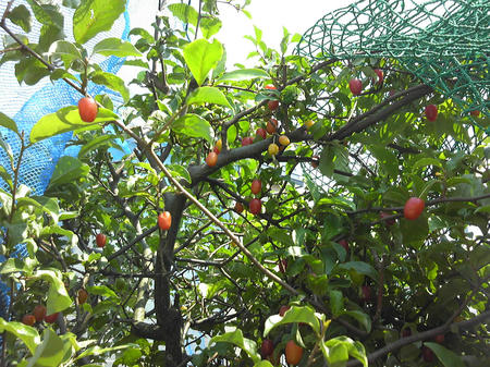 毎年実が赤くなり熟すとカラスに食べらるので今年は妨鳥ネットを掛け少々採り、ジャムにしてみました。