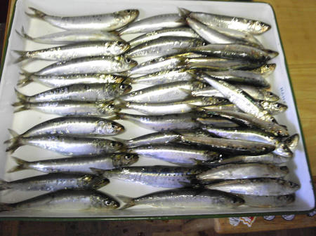函館港某船入り間で20センチ前後マイワシ入れ食い。サビキ釣りで小一時間で60匹と爆釣状態。小さなサイズはヒラメ釣りのエサ用に冷凍保存。